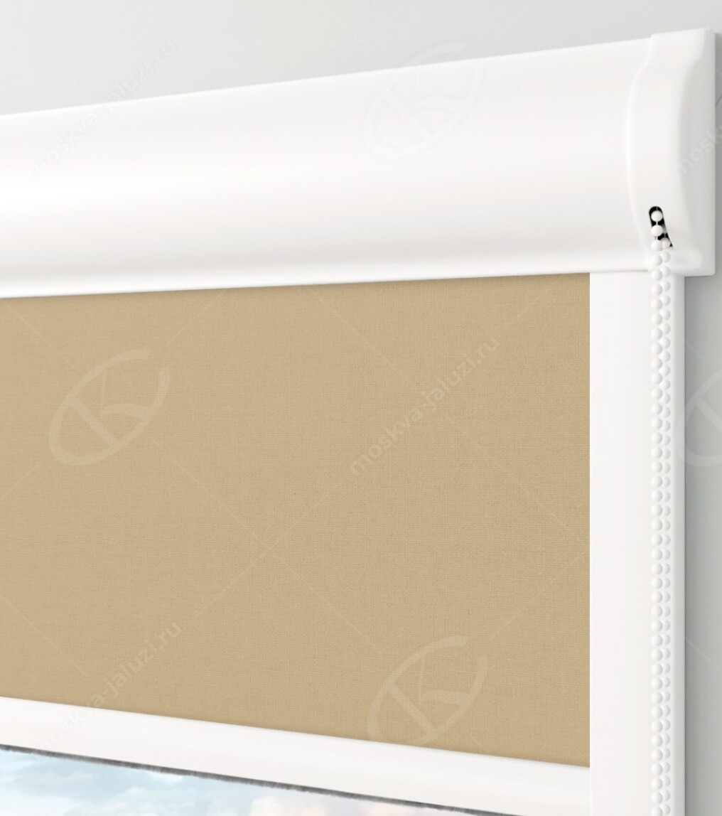 Кассетные рулонные шторы Уни-2 – Монако песочный – хороший выбор для управления освещенностью комнаты: это оптимальное соотношение цены и качества. Кассетные рулонные жалюзи легко устанавливаются и управляются: для подъёма и опускания полотна предусмотрена тканевая цепочка. При открытом положении ткань размещается в пластиковом коробе, при закрывании она перемещается по направляющим.